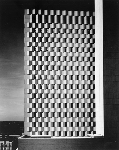 The second new aspect was more subtle. The services—elevators, ventilation shafts, electrical conduits—were moved to a separate but connected tower. This, according to Abramovitz, opened up the interior and promoted greater flexibility in spatial arrangements. Harrison & Abramovitz used this planning technique again in a skyscraper than for the Equitable Life Assurance Society's Gateway Center development project in Pittsburgh, in 1964, the service tower sheathed in stainless steel rather than concrete panels.