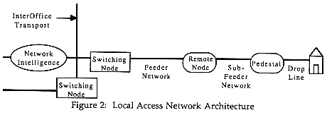 Note 11: This architecture is similar to what has been proposed by Bellcore as a the next step for using fiber in the local access network. See Bellcore Technical Advisory. Generic Requirements and Objectives for Fiber in the Loop Systems. Bellcore, TA-NWT-000909, (December, 1990). Back.