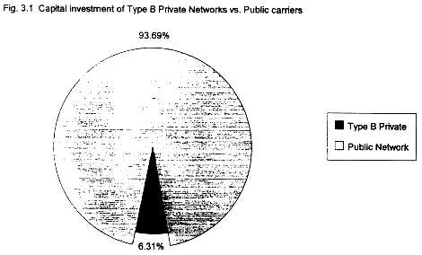 One can nit-pick at this distinction, particularly when large users employ complex mixtures of public, Type A, and Type B facilities. But the distinction is real and important nevertheless. As we shall see, it corresponds to two distinct categories of network privatization, categories with quantifiably distinct characteristics and trends. Type A and Type B private networks are appropriate for very different classes of users, have different effects upon the public network, and reveal different trends. O n the whole, the picture of network privatization that we get from making the distinction is far clearer than the one we get when we ignore it.