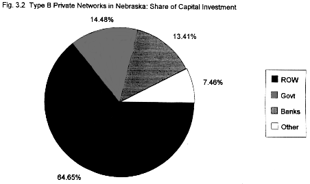 The combined book value of the surveyed Type B networks was equal to approximately $111.2 million. This is 6.31% of the Total Plant in Service of the state's local exchange and interexchange carriers (Figure 1). This number might go up to all of 8% if the missing networks were included. Although of course there is no way to be sure of the size of the missing data points, we are sure that we do have information for the largest networks. Type B networks which rely on leased lines for transmission simply are not very capital-intensive relative to the public network, even if, as is the case with the state government, a large number of terminals are served.